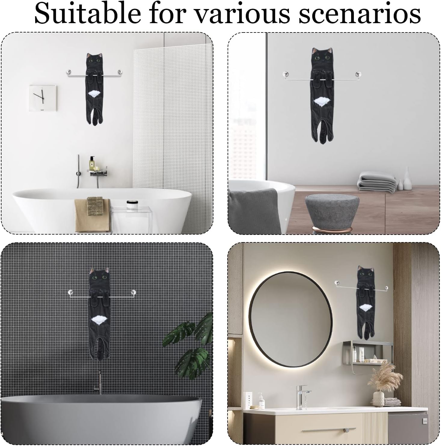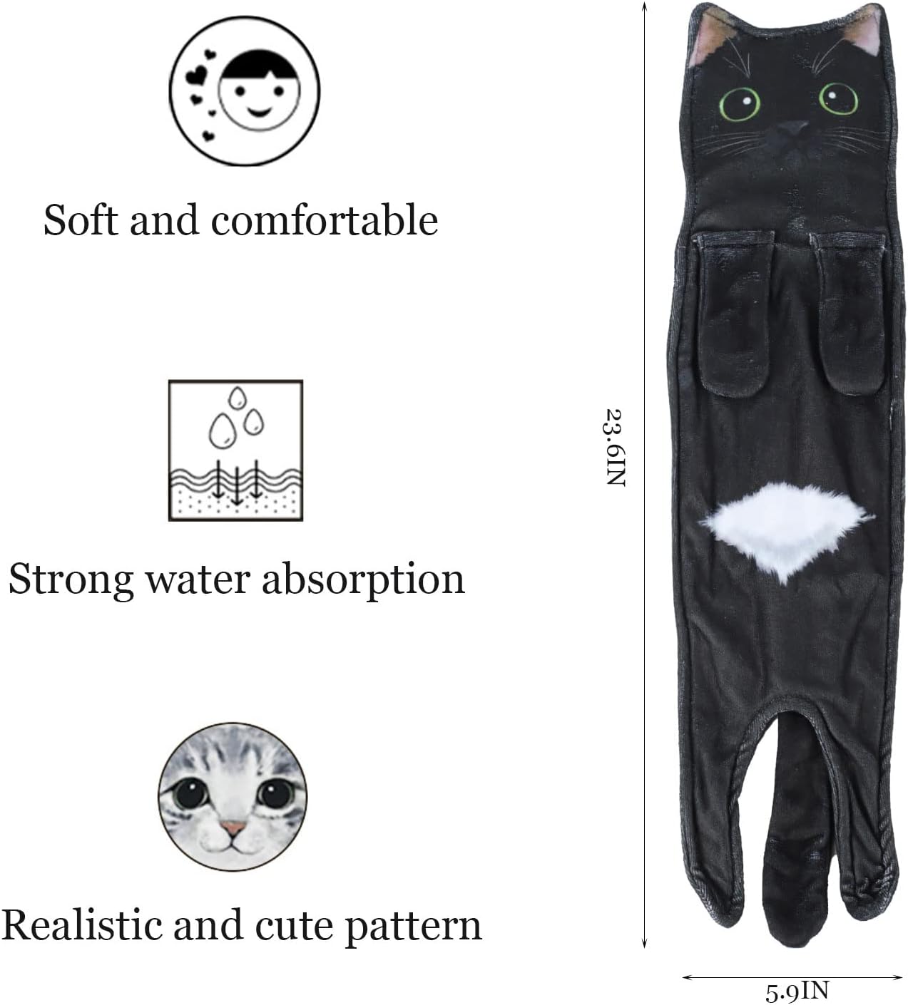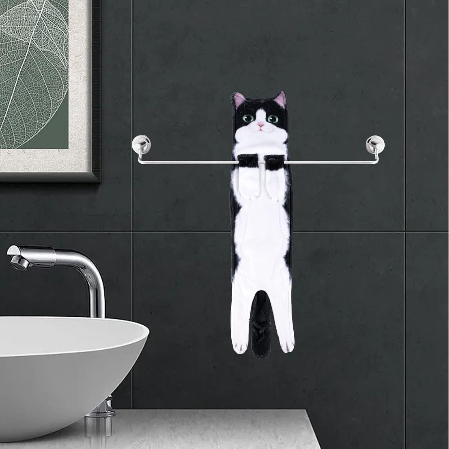 💖💖Cute Cat Hand Towel: This fun kitten towel perfectly blends the cute shape of a kitten with a hand towel. The kitten's paw has a snap design, so it can be hung securely on the towel rack. When hanging from the towel rack, the kitten hand towel can remain upright, maintaining its fun and cute appearance. It also can help improve your mood.