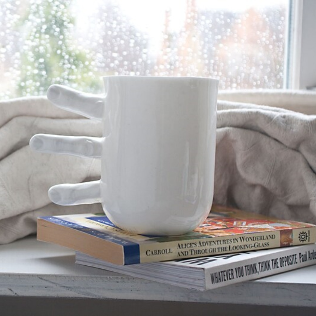 Intrigue your guests with the quirky porcelain mug with fingers. This ceramic mug features three life-like human sized fingers extending from one side, which serves as the handle. This piece of contemporary kitchenware is sure to impress each time you have a dinner party or even high tea. You’ll love how your guests do a double take when it’s time for dessert and coffee.