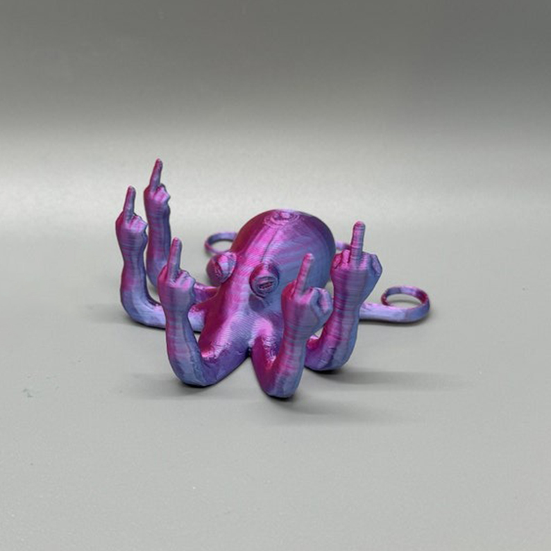 Introducing the ultimate prank gift and desk companion - the Fucktopus! This 3d printed octopus is not your typical sea creature, as it proudly holds up 5 middle fingers showing off a rebellious side.